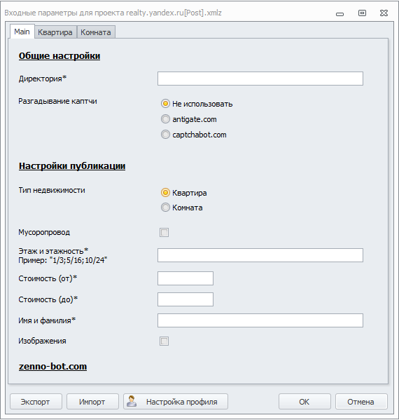 Абсолютно автоматическая система размещения объявлений на сайте недвижимости Яндекса. Для публикации доступны как квартиры, так и комнаты (каждый режим со своим набором гибких настроек).