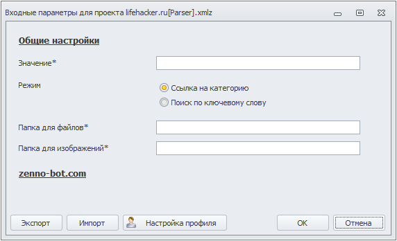 Для сохранения контента необходимо указать пути: путь к папке для файлов и путь к папке для изображений (названия файлов являются названием постов).