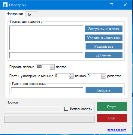 Ссылки на интересующие группы / паблики VK можно добавлять как вручную так и загрузив текстовый файл с сообществами.